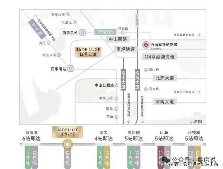 地处南山与宝安交界处,紧邻地铁12号线(在建)同乐南站,步行距离约500米,项目坐拥南山核心区位,毗邻科技园、前海自贸区及留仙洞总部基地,5站可达高新园,辐射粤港澳大湾区核心产业带,具备承接高端人才居住需求的潜力。