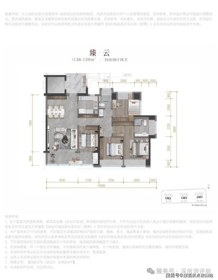 建面约138-139㎡四房两卫 专梯入户