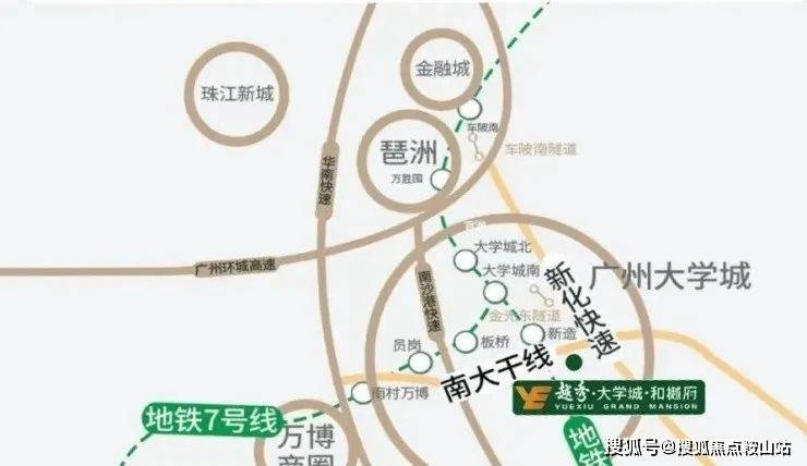 项目距离4号线新造地铁站约800米,4站到万博、琶洲,5站金融城,另外今年金光东隧道也会通车,届时大学城南和大学城一期、琶洲、金融城链接在一起,到时候大学城南前往核心区时间会大大缩短。