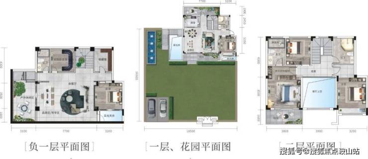 B2上叠 建筑面积约172㎡、花园约160-294㎡、地下室约153㎡