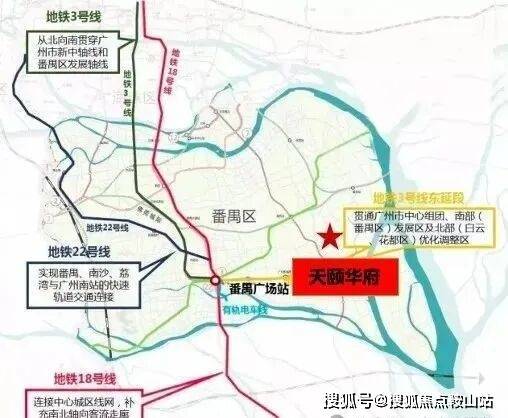 四地铁:地铁3号线,18号线(预计今年通车)、22号线(预计今年通车)、17号线(在建)番禺广场交汇站