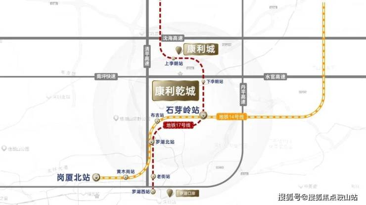 双地铁:距14/17号线(在建)双地铁交汇站——石芽岭站仅百余米,14号线2站罗湖,3站福田,4站直达岗厦北。14号线无缝连接11号线,双地铁贯穿深圳全城。17号线计划2028年通车,将快速直达罗湖;