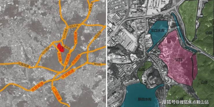 项目东临深圳龙岗区,北连东莞市中心,交通十分便利。基地的南部毗邻山体,整个地块地形较为平整,东南部一小部分嵌入山体。周围的景观资源十分丰富。 我们希望在此创造一个深莞互动发展下的产城融合先行示范区;一个健康宜居的跨界休闲生活目的地;一个人与自然深度融合的新型城镇。