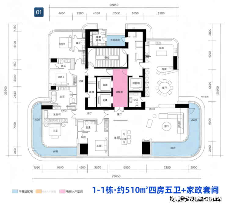 项目以建面约210㎡、305㎡、370㎡、510㎡住宅产品,约400套,打造纯粹海景大平层顶豪产品。