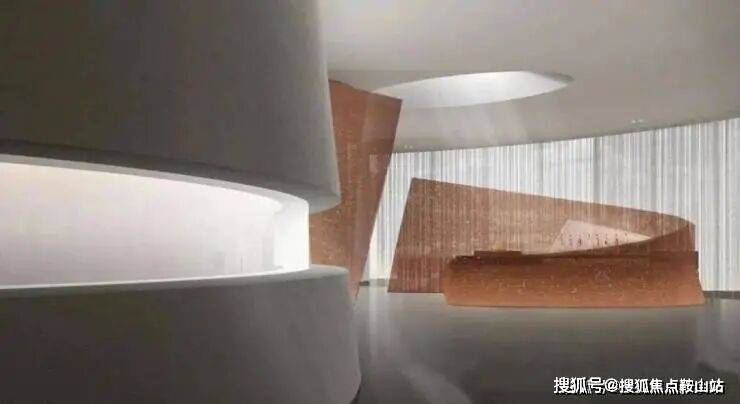 同时打造了约 13m 挑高的下沉庭院,搭配约 4.5m 高的玻璃幕墙,将自然景致引入地下,形成 “主入口 - 艺术环廊 - 视觉水景” 的连贯空间体验。地下一层的光庭设计,还能为车库引入自然光线。
