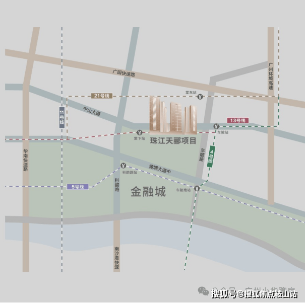 【Top5:赶超珠江新城 极速生活圈】项目紧邻地铁13号线二期棠下站(预计2023年底通车,地铁联通口已预留,最终以政府部门规划为标准),10分钟抵达金融城交通枢纽,并以3+4+5超级交通枢纽,构建1小时湾区资本圈!