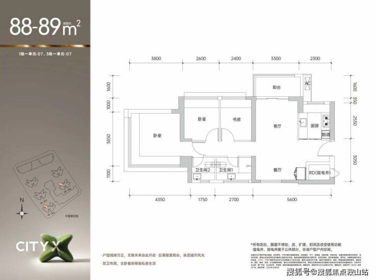 10、总栋数及楼高:由5栋58-59层高住宅组成,其中1栋1单元住宅59F,1栋2/3单元住宅58F,3栋1单元/2单元住宅58F,4栋1/2单元写字楼35F,2栋是1所18班幼儿园,配建有公交首末站。