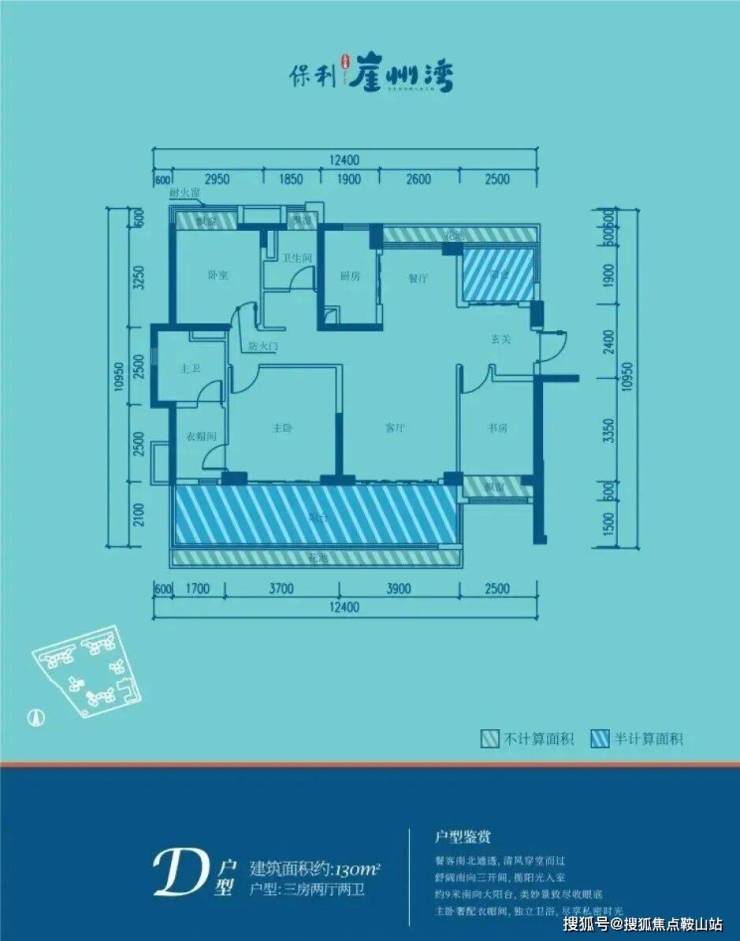🏖D户型130㎡三房两厅两卫