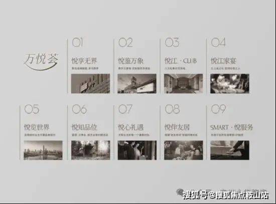 内部「万悦荟」整合多元业务领域,联手行业领先国际品牌,为业主带来系统化、定制化的全新滨江万象生活方式,包括:悦享无界、悦鉴万象、悦江·CLUB、悦江家宴、悦览世界、悦知品位、悦心礼遇、悦伴友居、SMART·悦服务9大权益。