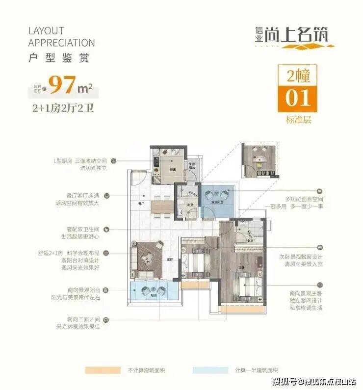 👑阔绰97㎡2+1房2厅2卫【南向景观】