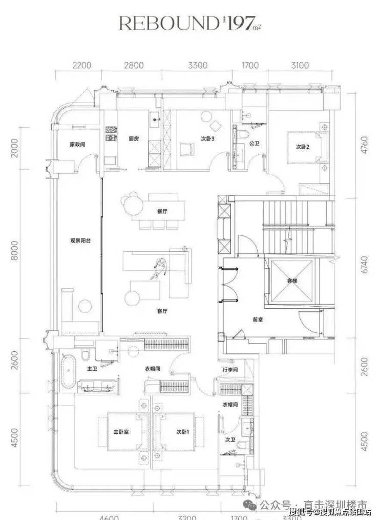 后海招商玺主打顶奢纯粹圈层,无小户型掺杂,主力面积涵盖188-247㎡纯大平层,包含197㎡四房三卫、237㎡四房三卫及246-247㎡顶奢四房,仅规划261套可售稀缺房源。全系精装交付,装标高达10000元/㎡,计入私梯厅后使用率可达95%,3.3米奢阔层高,2梯2户或3梯3户专梯入户,部分高区户型配备270°环幕视野,可俯瞰深圳湾海景,适配塔尖家庭高端居住与社交需求,后海招商玺以标杆级产品力定义顶奢人居。