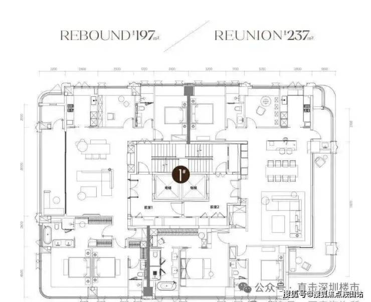 此次推出42套197平与237平大四房户型,专梯专户。