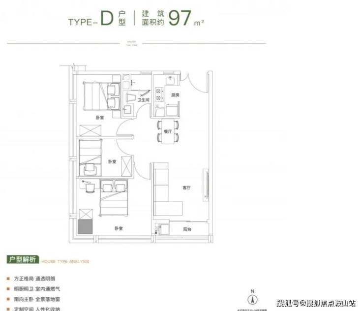 建面约97㎡的户型为三室一厅一卫的布局,次卧可灵活打造成儿童房、书房等空间,既能满足自身居住需求,也能让客人来家小住,可以照顾到生活的各方面细节。