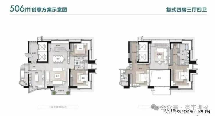 ▫️约280㎡|4+1房4卫双梯入户,横厅连接阳台,主次卧双套房,西南向高层可看深圳湾