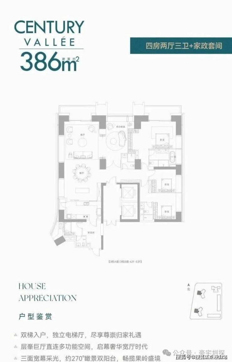 ▫️约386㎡|4+1房4卫双梯入户,横厅连接多功能空间,西向望高尔夫及大沙河生态长廊