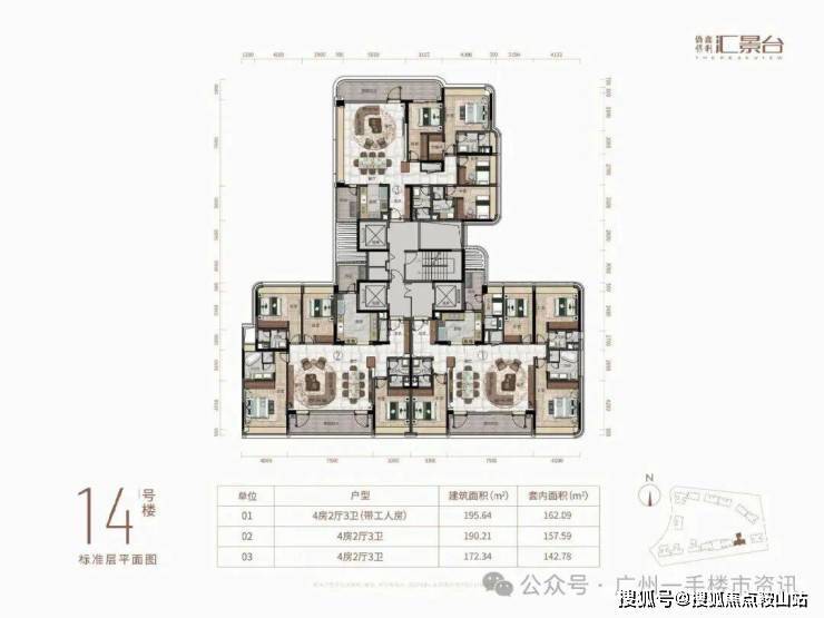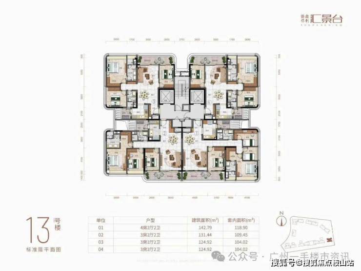 目前整个侨鑫保利汇景台住宅主要在售1-7栋和11-14栋的户型,除了12栋还未推售以外,其余8-10栋则已经基本全部售罄,现在项目主要在售户型为123-290㎡的三至五房产品,以及13栋还有少量131㎡和142㎡的稀缺南向三房户型。