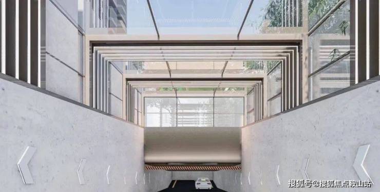【时尚车库空间】玻璃雨棚为序,辅以灯光廊道,塑造具有秩序感的入口空间效果,尊享归家礼序