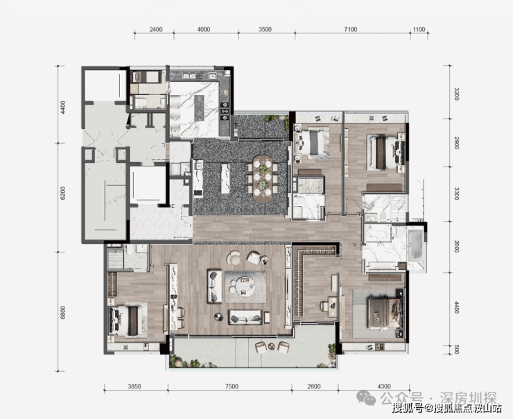 目前200-300平的市场在售住宅里,唯一做到3.5米层高+两户三梯+四开间朝南+南北对流畔山巨幕双阳台+全套房设计,重新定义豪宅居住标准
