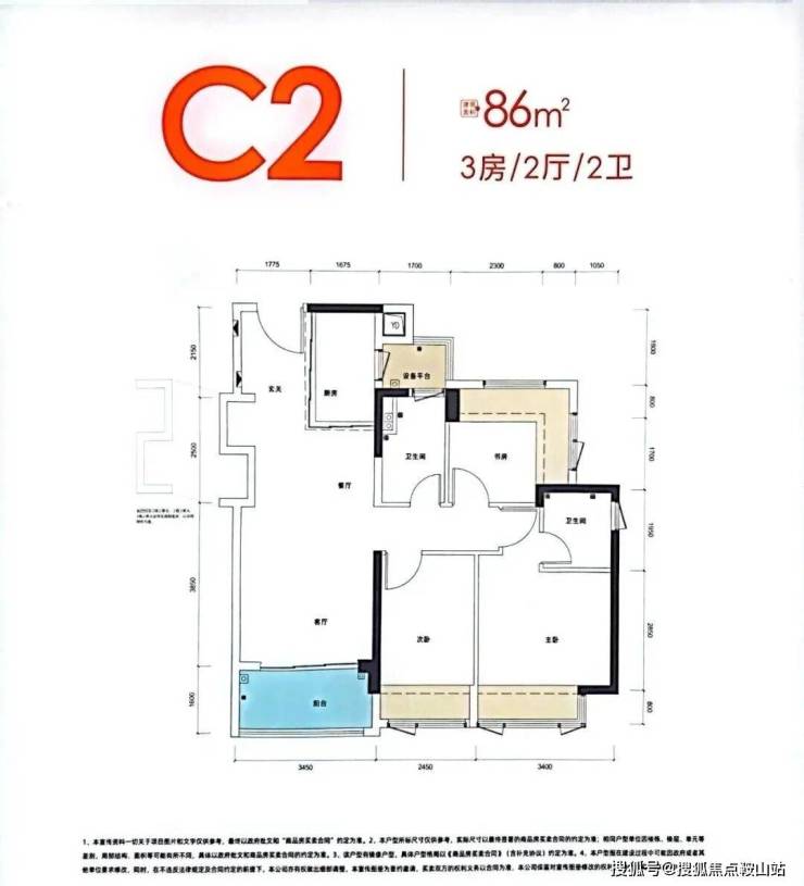 89㎡的3房2厅2卫: