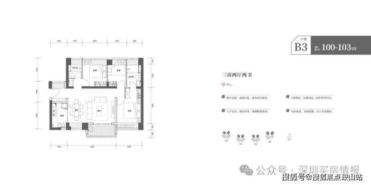 B3户型100-103平3房2厅2卫