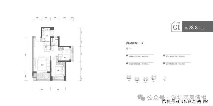 C1户型78-81平2房2厅1卫