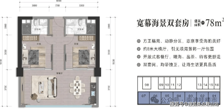 湾区畅销理想住所约78-82㎡ 一线海景双套房◎8米超大横厅 ◎ 双套房设计 ◎格局方正