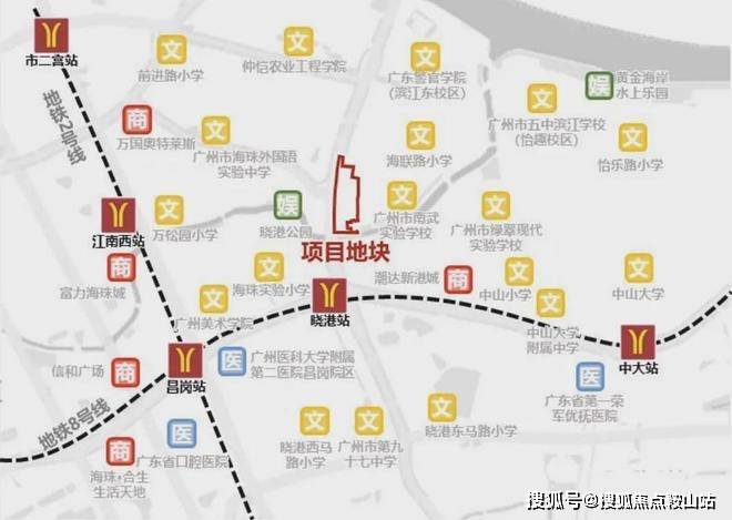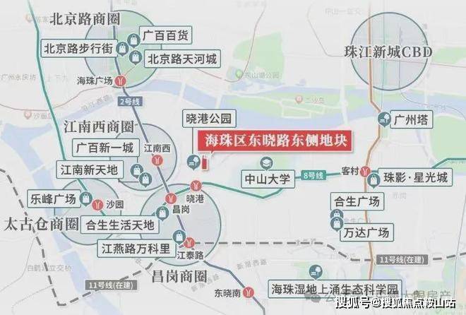 距离地铁8号线晓港地铁站仅0.6km,8号线可以直达琶洲、客村等商务圈,一站到昌岗可以换乘2号线,到南站、白云新城也比较方便,三站客村换乘3号线,到珠江新城、体育西路,能实现40min内通勤。