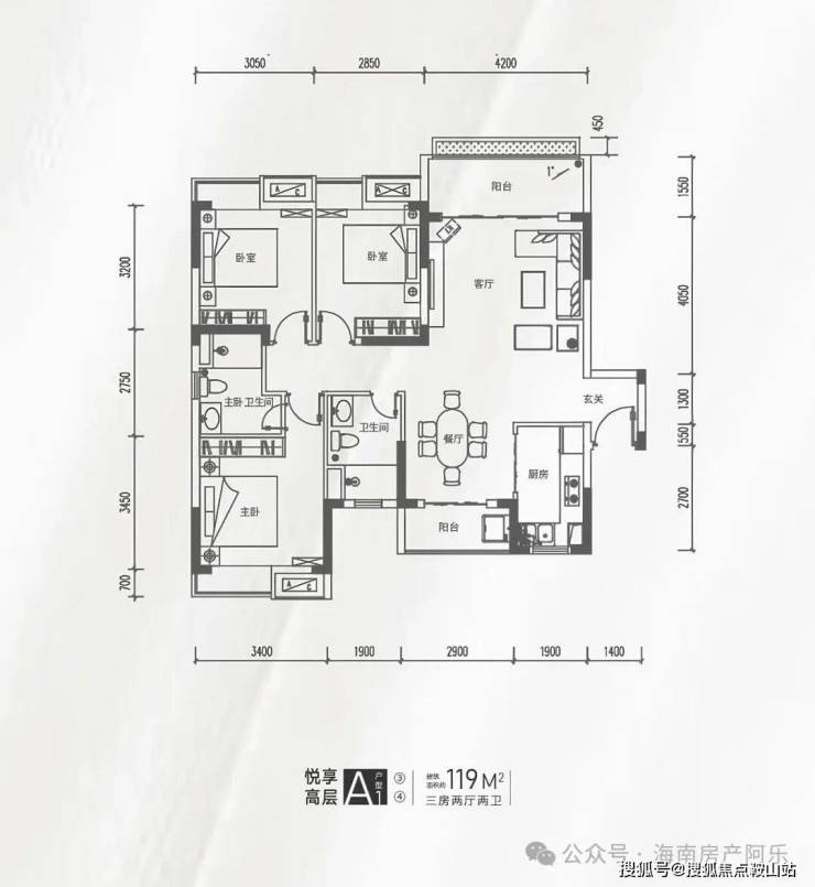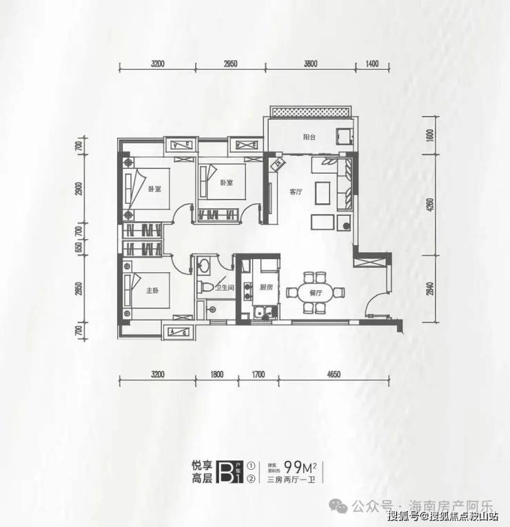 在售户型:建筑面积约99-100㎡三房两厅一卫、约116-119㎡三房两厅两卫