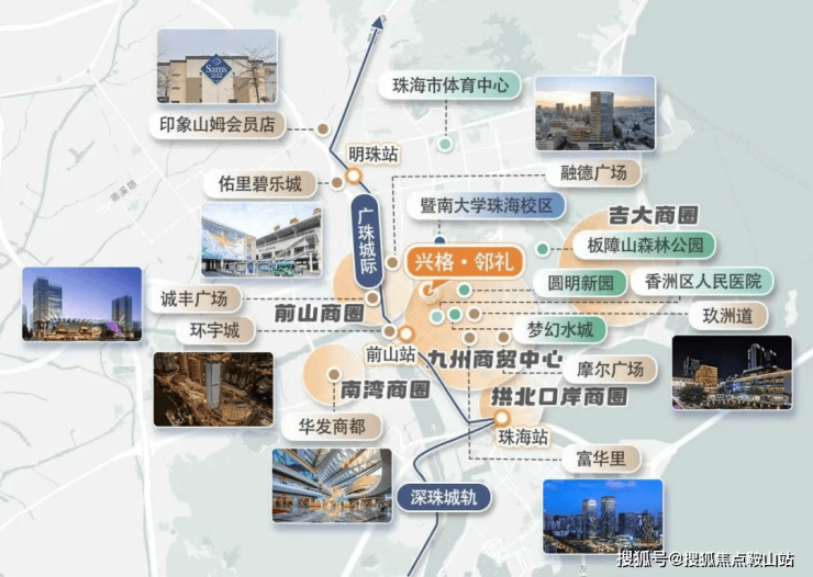 项目周边直径1公里内,汇聚富华里、玖洲道、环宇城、诚丰广场四大商圈,出门可达前山市场,日常生活购物极为便利;中山亭社区卫生服务站、香洲区人民医院等医疗配套齐全;暨珠小学、前山中学、暨南大学等多所学校环伺周边,真正实现优质资源举步即达。