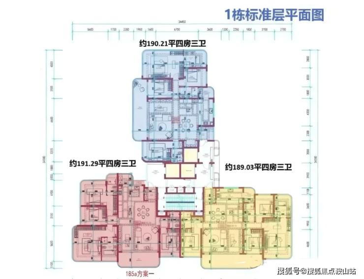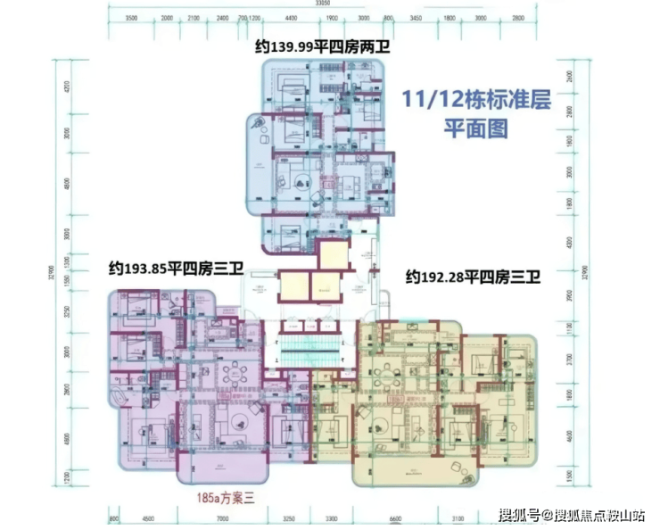 3梯3户分布于1、6、7、10、11、12单元,层高3.3米,提供140-195㎡户型,涵盖4房2卫至4房3卫。