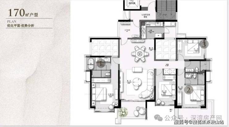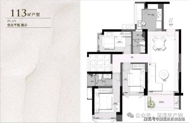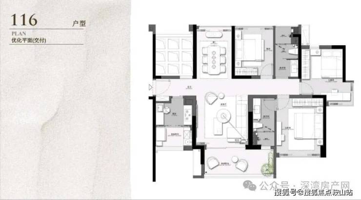 户型:86㎡3房起步,109㎡做到4房,最大176㎡五房!两梯三户,得房率92-118%