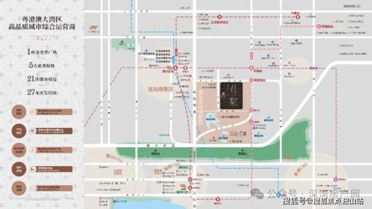 五轨道:5号线3站南山、10号线2站福田、规划中的22号线-25号线-27号线,城市脉搏咫尺把握。