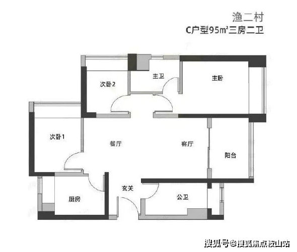 2. 95㎡三房两厅两卫(刚需改善主力户型)