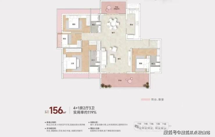最稀缺的约156平四房,可以扩展成4+1房2厅3卫的格局。