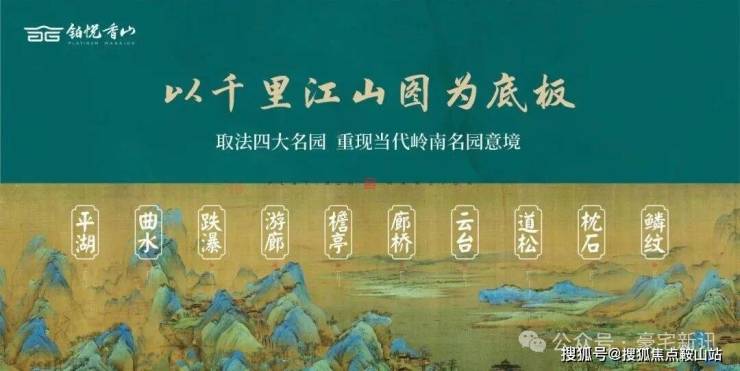 园林设计以《千里江山图》为灵感蓝本,巧妙融合岭南四大名园精髓,复刻佛山梁园"半边亭"。通过"漫卷云章"、"金水澜庭"、"琉璃水院"三进式景观轴线,呈现移步换景的东方美学。