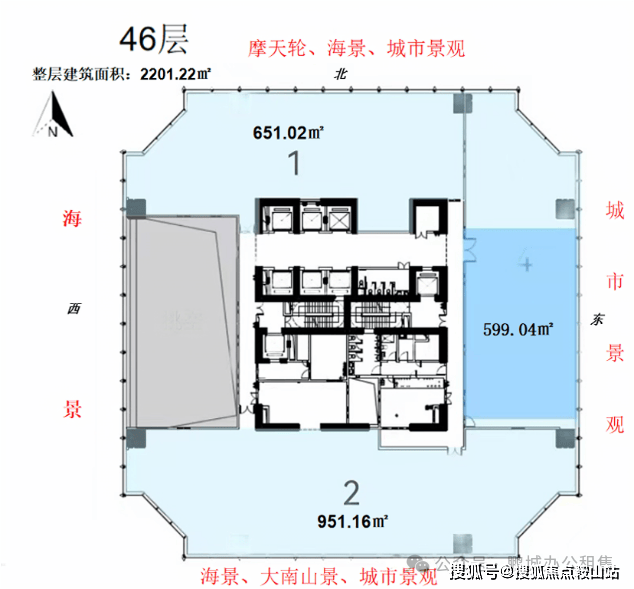 租赁单位:T1栋可供租赁的整层楼层包括:40层、42层、46层、52层、53层及54层。