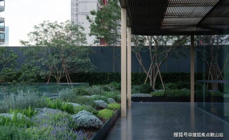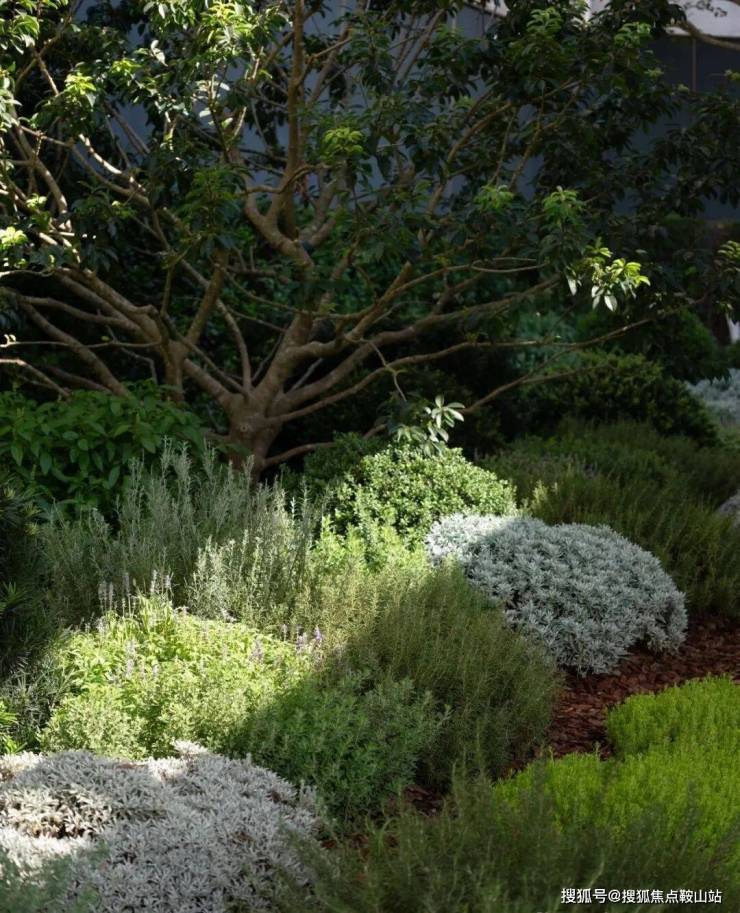 混植打造自然生机的花境,银灰色系与绿色系品种互相搭配,舒缓又素雅的高级感,符合场地低调纯粹的气质。