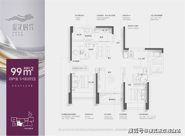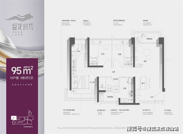 【户型面积】约99㎡3+1房2卫/95㎡3房2卫