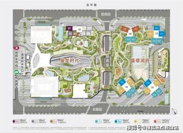 【盛璟润府】定位是面向城市高端阶层、追求生活品质的“改善型”豪宅社区。产品为143㎡舒阔四房/118㎡宽厅四房,以及96㎡横厅三房/95㎡向南三房,另外还有少量面向城市塔尖人群的145-207㎡顶层复式