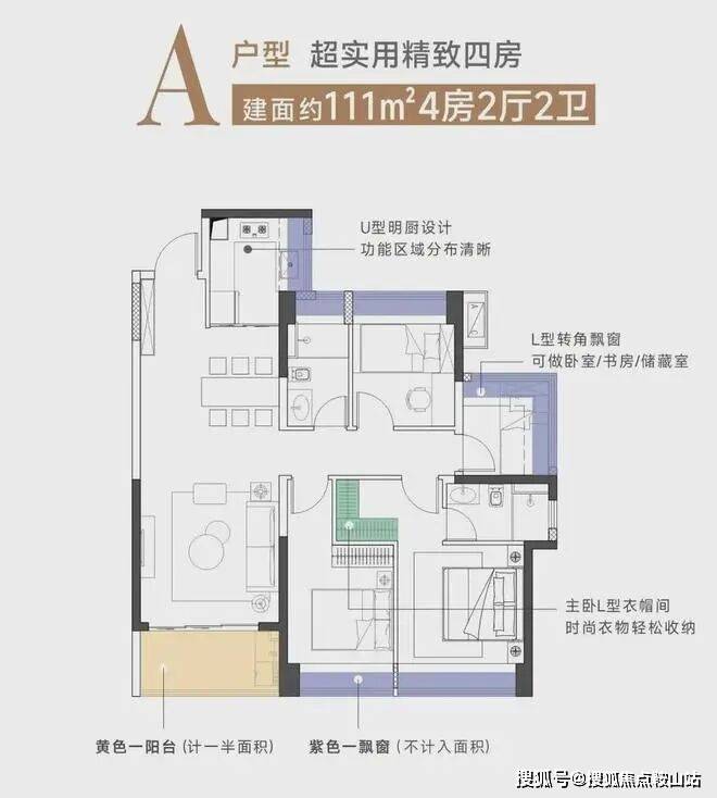 建面约111㎡竖厅4房2厅2卫,打造了极致四房,相对市面上同面积产品常为三房配置而言,为生活和兴趣多预留了“一间房”,把空间发挥到极致,在改善类型产品中难得一见。
