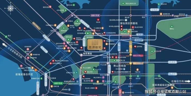 看下图,缙樾府东面是南山科技园,西面是前海,南面是后海、深圳湾,北面是西丽留仙洞。