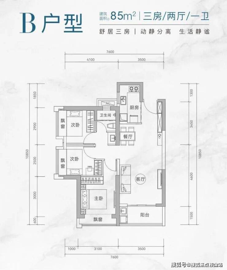 【建筑面积85㎡3房1卫】