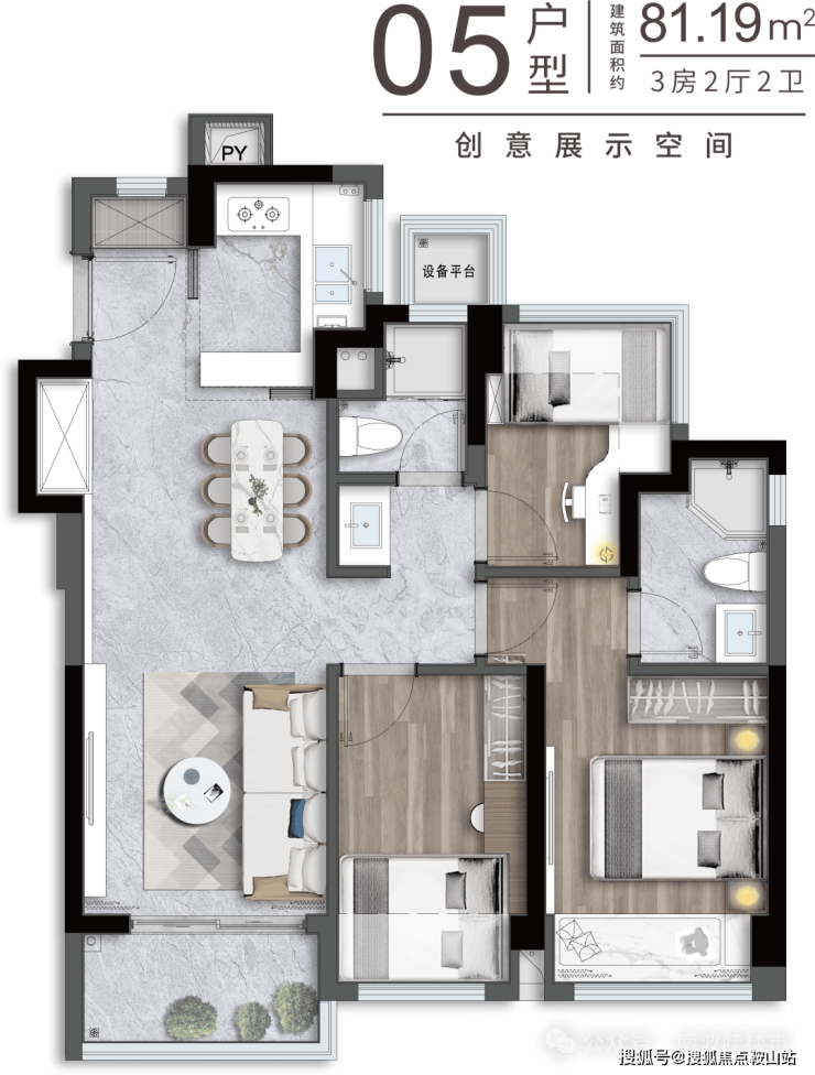 建面约65-81㎡稀缺新规小户型2-3房