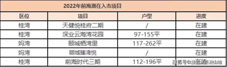 当下前海仅4个住宅盘待售,最快入市的或是颐城栖湾里