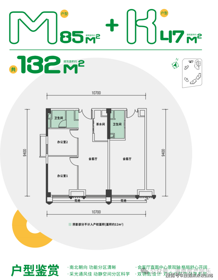 M户型两房一卫+K户型开间 132㎡双钥匙