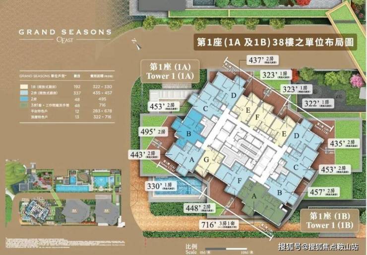 GRAND SEASONS为将军澳日出康城12C期,由1座(细分为1A及1B座),合共提供650套,提供1房至3房户,实用面积283至716平方呎,当中2房占61%最多,层与层之间高度达3.3米。面积最小单位为1B座8楼E室,实用面积283平方呎,1房户型,外连135平方呎平台;而最大单位则为1B座9至66楼的A室,实用面积716平方呎,3房户型,其中66楼A室另连562平方呎天台。