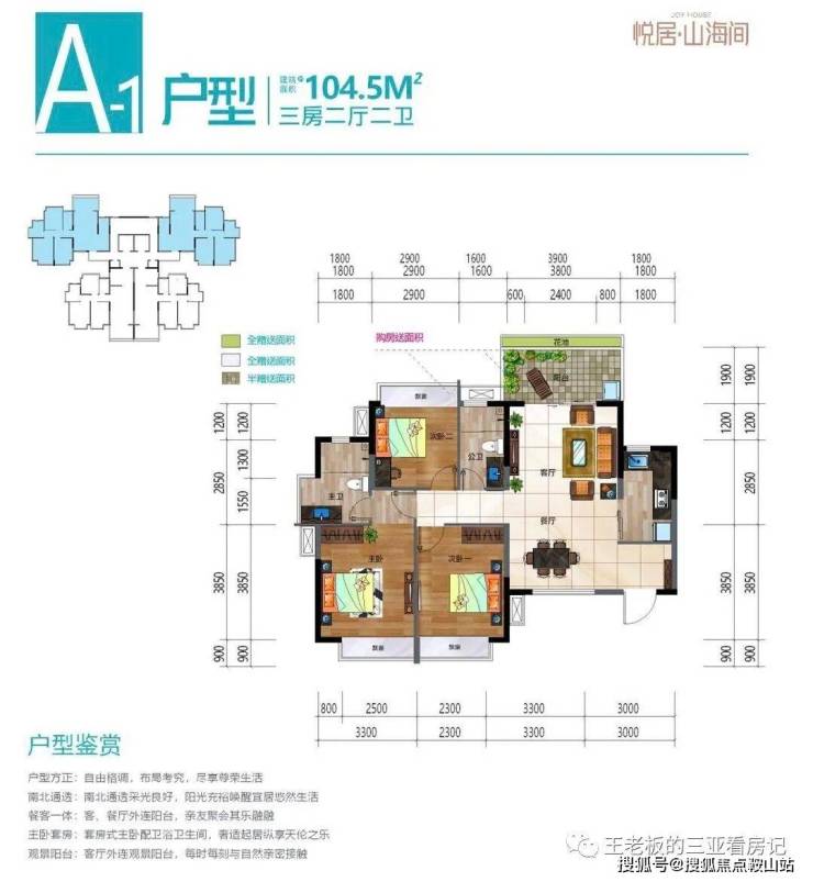 在售户型面积:约103㎡~104㎡