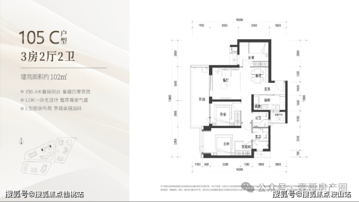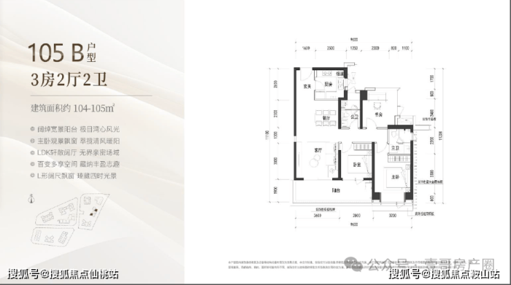 本次首推的 02 地块 105 ㎡产品有 4 条腿,户型有这个双龙抱珠的,还有一个户型是竖厅格局,各有优势,看个人喜好选择。