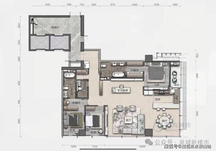 在售建面约125-375㎡2-5房,主力产品为200-375㎡