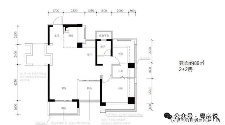 89㎡4房2厅2卫,折后单价5.04-5.55万/㎡,总价450-496万
